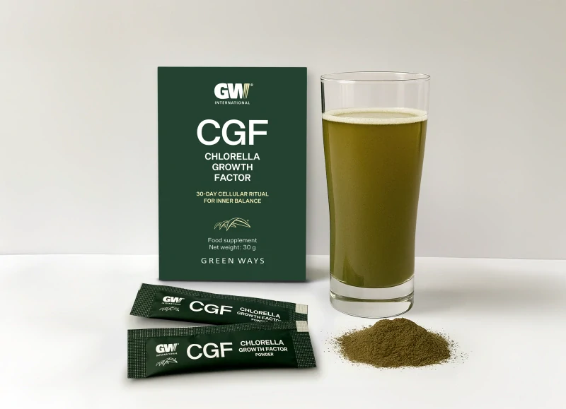 CGF není náhrada chlorelly – je to její esence. Vnitřní míza. Funguje samostatně i synergicky s Chlorellou a Ječmenem Green Ways.